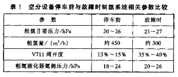 停運粗氬液化器和精氬塔的第二天,塔皮上的結霜現象消除,據此進一步確認為V711閥后管道泄漏。