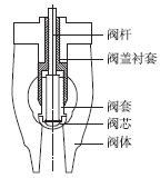 為保證閥門(mén)開(kāi)度滿足要求,原閥蓋襯套靠閥芯側(cè)沿軸向去除39mm,加工面最大粗糙度為6.3μm。打磨氧化皮后,測(cè)量確認(rèn)閥桿彎曲度、各部套間隙、閥門(mén)行程合格且閥芯活動(dòng)靈活。對(duì)閥芯、閥座進(jìn)行檢查,密封線合格后整體回裝。