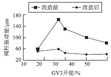 圖5 2號(hào)汽輪機(jī)GV3閥芯改造前后振動(dòng)對(duì)比