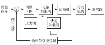 圖2為GV3的控制原理圖。由圖2可知,GV3為閉環(huán)控制,閥位指令信號(hào)與閥位反饋信號(hào)比較后形成閥位偏差信號(hào),經(jīng)伺服放大器轉(zhuǎn)換成電流信號(hào)并進(jìn)行電功率放大,接著在電液伺服閥中將電信號(hào)轉(zhuǎn)換成高油壓信號(hào),用以驅(qū)動(dòng)油動(dòng)機(jī),進(jìn)而通過(guò)傳動(dòng)機(jī)構(gòu)改變閥位。線性位移變送器測(cè)量的閥位信號(hào)反饋至調(diào)節(jié)回路的輸入端,使閥位偏差信號(hào)逐漸減小。當(dāng)閥位偏差為零時(shí),系統(tǒng)便達(dá)到新的穩(wěn)定狀態(tài)。